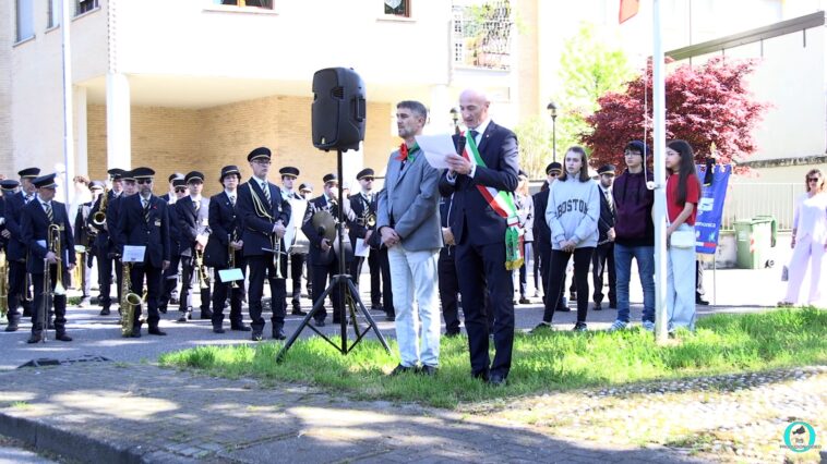 Alcuni momenti del corteo e il discorso del sindaco Cesare Nai.