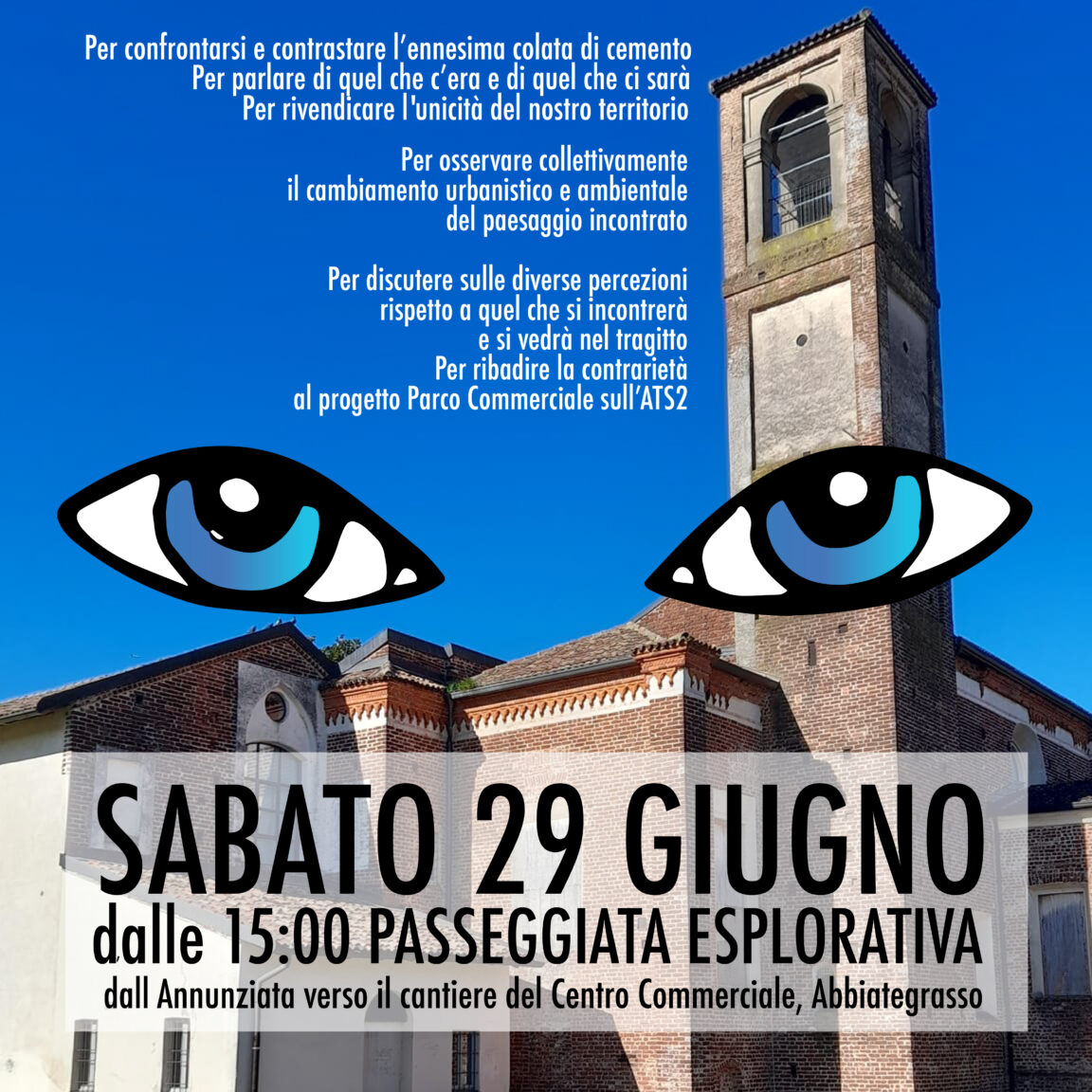 Sabato passeggeremo lungo le reti del cantiere “Essedue” per ribadire la contrarietà alla devastazione che i signori del cemento vogliono abbattere sul territorio Abbiatense immaginando un futuro diverso e migliore per tutte e tutti.